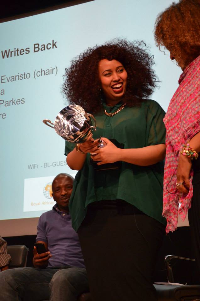 Perhaps both of these contentions are particularly diasporic concerns (African or otherwise), uncertainties from the befuddlement of living with, as Nii put it, “not just two eyes.” And with this more than duality, the Diaspora Writes Back spoke back, crisscrossing multiple rhythms, flows, languages, locations. The event ended buoyantly with Bernadine catching Warsan off-guard and presenting her with an FA Cup-sized trophy for being the first winner of the inaugural Brunel University African Poetry Prize.