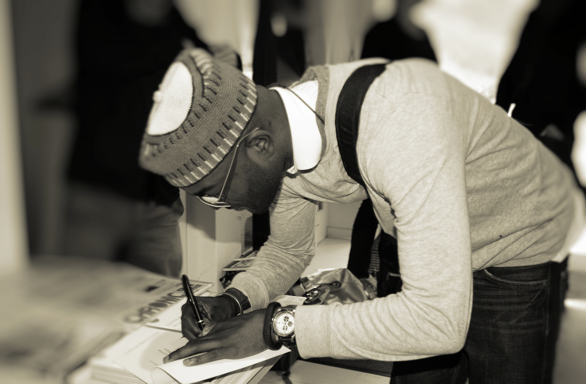 An urgency for communication is at the heart of Ellams’ creative work, be it in the way he delivers a poem – with swift pace and carefully flowing rhythm – or in the subject matter of a recent theatre project – a play based on dialogues he overheard in urban African barbershops (Barber Shop Chronicles). And Ellams is aware that a physical presence is not enough anymore: he is enthusiastic about digital