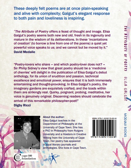 Now the World Takes These Breaths (2014) by Joan Metelerkamp and The Attribute of Poetry  (2015) by Elisa Galgut are available from Modjaji Books.