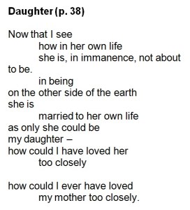 Each poem is a multi-layered expose that reflects back one particular moment from a lifetime’s worth of thoughts and experiences — a lifetime’s worth and more as Metelerkamp repeatedly presents musings on the lives of others in her family (her son, her daughter, her father) as well — and chips away at the knowledge we all build from life’s various influences. Much as her daughter leaves the family home “with her Hegel, Bob Dylan, the Bible” (p. 22), this collection brings together the religious rituals, the philosophical and visionary musings we allow ourselves in our most intimate moments, and the poetry of the streets that is our banal and everyday life. As the pages turn and the poems add together, the story unfolds — literally un-folds — with Metelerkamp bringing into question meanings, desires, and memories previously understood and accepted. The final chapter of poems in particular notes that any acceptance, any “this is how it is / it’s ok / it can go” (p. 61), will only ever be provisional. Her certainties, her irritations and even her doubts are continually open to her “lack of clarity, irritability, depressiveness, forgetfulness” (p. 58). And this self-doubt is not confined, as its persistence begins to infect the reader. Sole, for example, notes of ‘Daughter’ how “the reader is left uncertain as to the tone and eventual meaning of the poem – is it self-criticism, celebration or self-justification”: