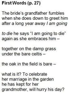 Across the collection both poet and reader are led into an arena of doubt where meaning can only be sourced by an appeal to “abbreviated references”, “tendential half-statements”, and the seemingly random selection of previous poems, both ours and others, metaphorical and real.[3]