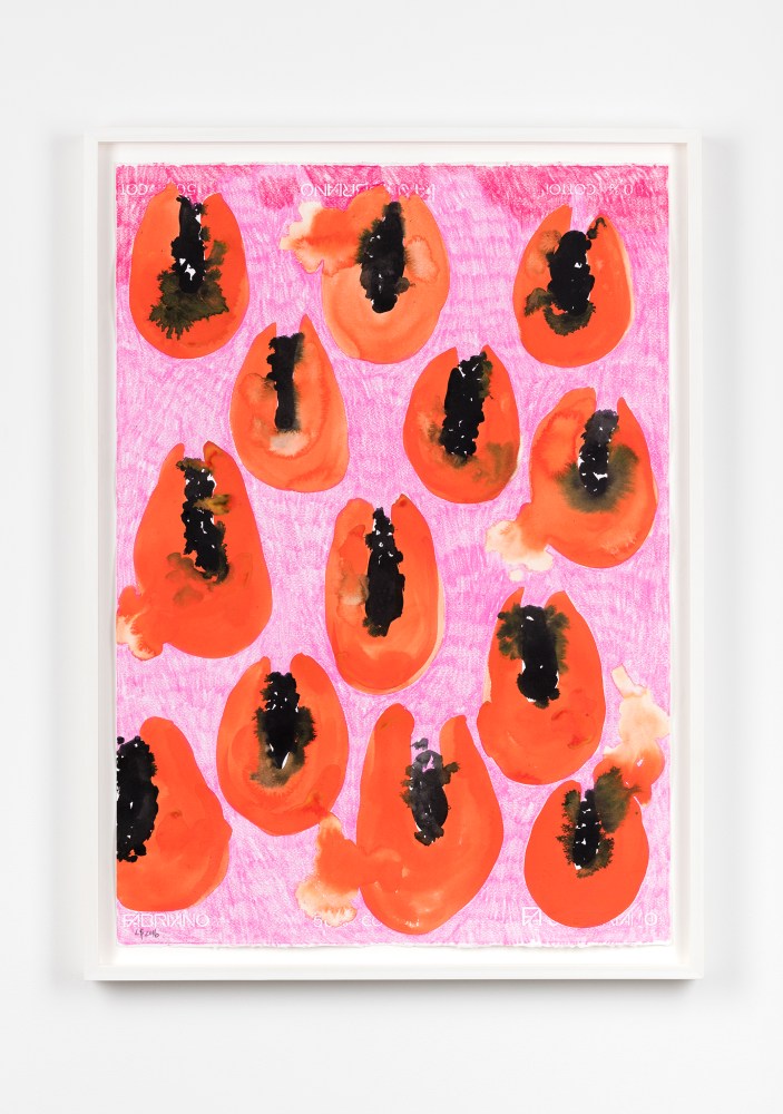 Lady Skollie, Paw Paw print, 2016 watercolours, ink and crayon on Fabriano unframed: 70 x 49.5 cm framed: 76 x 55.5 cm Copyright the artist, Courtesy Tyburn Gallery