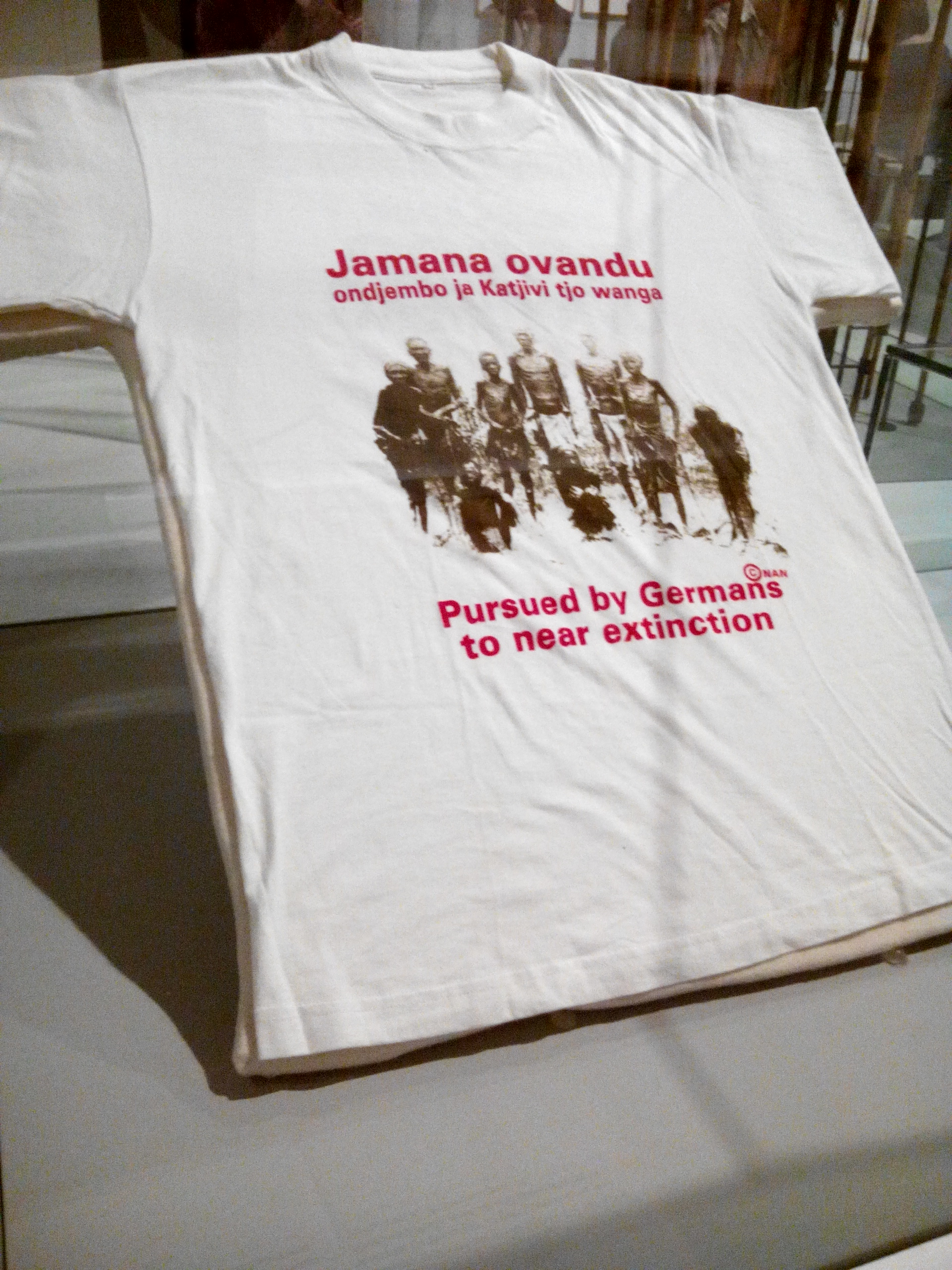 A T-shirt – part of contemporary efforts to demand official recognition and apology from the German state for the genocide of Herero and Nama people.