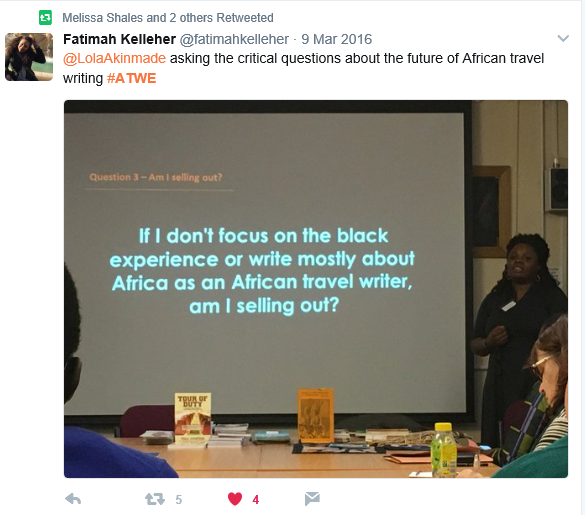 ‘Akerstrom Twitter’ Published 15 June , 2017 at 585 × 515 in ‘”It’s a passport!” my inner voice yells’. Review of Lola Akinmade Åkerström’s Due North African Travel Writing Encounters Conference, 2016 ‹ Back