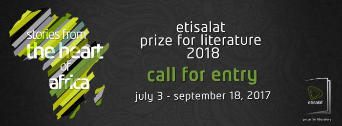 Lagos, Nigeria, 26 June 2017: Following the successful completion of the fourth edition of its flagship pan-African literary prize, Nigeria’s most innovative telecommunications company, Etisalat, has announced a call for entries for the 2018 Etisalat Prize for Literature. The opening date for the submissions is 3rd July 2017 and the closing deadline is 18th September 2017.