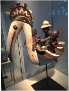 Notably, this exhibition boasts as its Scientific Advisor the esteemed French historian, Catherine Coquery-Vidrovitch, who has worked extensively on African history and the history of colonization. In organizing the collection, the displays are arranged by themes and concepts such as “Commercial Roads,” “Spiritual Roads,” “Aesthetic Roads,” “Colonial Roads,” etc. “Commercial Roads” explains and exhibits how gold, ivory, and slaves were consistently the three biggest exports to Europe and Asia. In “Spiritual Roads,” one sees an example of Africa’s global circulation by presenting how influences from the gods of the Yoruba religion are still found in Brazil and Haiti. The “Aesthetic Roads” section discusses the exchanges of language, migration, and technology. The exhibition’s last major section on “Colonial Roads” provides a general overview of Europe’s acts of exploitation and the spread of the Atlantic slave trade.