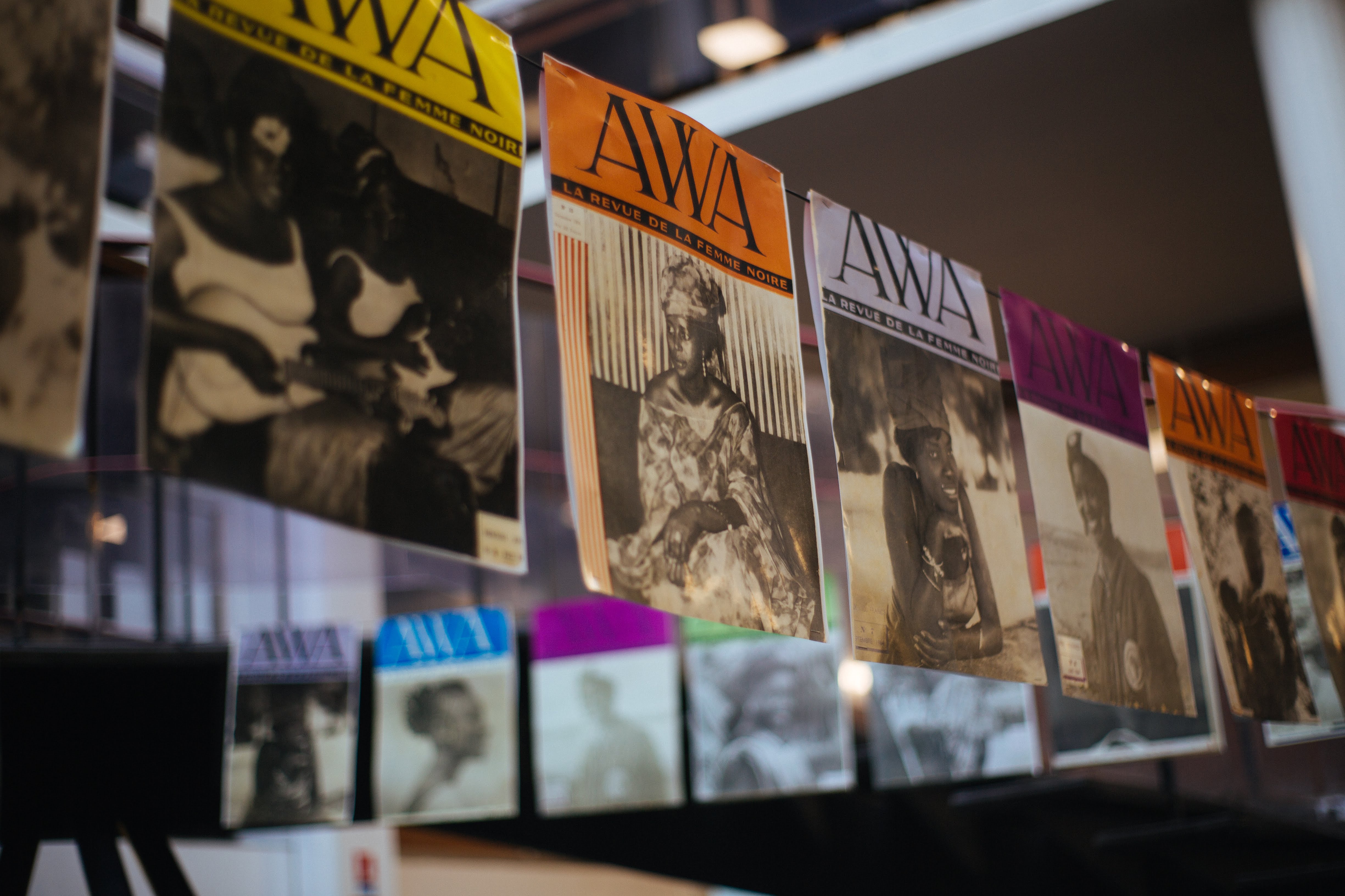 The exhibit’s beautifully illustrated and clearly written information panels retrace the history of the magazine and its founders, grounding it in the historical, socio-political, cultural and economic context of its emergence. Glass display cases showcase original pages from the magazine, allowing the visitor a first-hand experience of the magazine’s aesthetics and tone. A video-installation shows two 2008 documentaries on Awa founder and radio journalist Annette Mbaye d’Erneville : Mère-Bi, directed by her son Ousmane William Mbaye, and Jigeen bu jambar ! Annette Mbaye d’Erneville : championne des femmes et militante culturelle by Debra S. Boyd. The visitor can also watch Diabou Bessane’s 2012 documentary Les mamans de l’indépendance, which focuses on the largely forgotten active political role women played in Senegal’s independence movement. Colour posters of Awa covers further allow the visitor to get a feel of the magazine. In the museum space of the Musée de la femme Henriette-Bathily, a photo booth enabled visitors to pose as Awa cover models. In the long run, the exhibition is expected to continue travelling, in Africa and beyond, with exhibitions planned in France, Senegal, Belgium, and the United States.