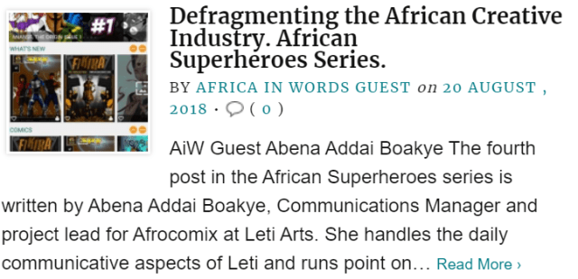 For more in the African Superheroes series, trace it back and forth across AiW with the previous post –