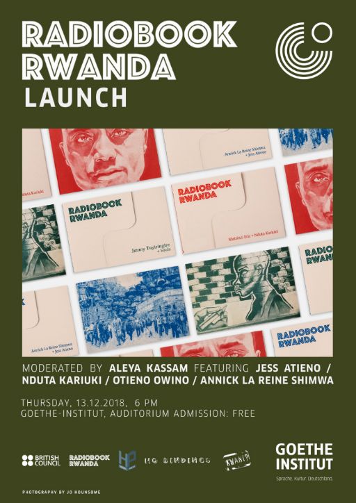 Radiobook Rwanda is a new multimedia literary imprint, showcasing Rwandan and East African creative voices. The imprint is the brainchild of three publishers: Huza Press (Rwanda), Kwani Trust (Kenya) and No Bindings (UK). The first three ‘radiobooks’ are being launched in Bristol, Nairobi and Kigali over November, December and January.  The Nairobi launch takes place tonight at the Goethe Institut where Aleya Kassam is in conversation with editor Otieno Owino, artists Jess Atieno and Nduta Kariuki and writer Annick La Reine Shimwa.  More details of RadioBook Rwanda’s homecoming Kigali event coming soon!  In the meantime start listening to the podcasts being released weekly on SoundCloud here.