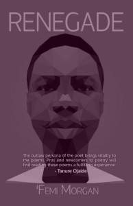 Having published print and electronic poetry pamphlets including Silent Drummings (2008), Phases: Poetry of People (co-ed 2015) and Songs of Travel (2016), Renegade, available from Okada Books, is Femi Morgan’s full length major work. Morgan, whose poetry has been featured on several African platforms including African Writer, Saraba, Sentinel Nigeria, Jalada, is a literary curator and founder of Artmosphere, an event which has played host to many prominent Nigerian writers. He has read his work at festivals, such as Lagos Book and Arts Festival and Niyi Osundare Poetry Festival, and received a few recognitions, including a Barbishai Niwe Poetry Prize longlist in 2015