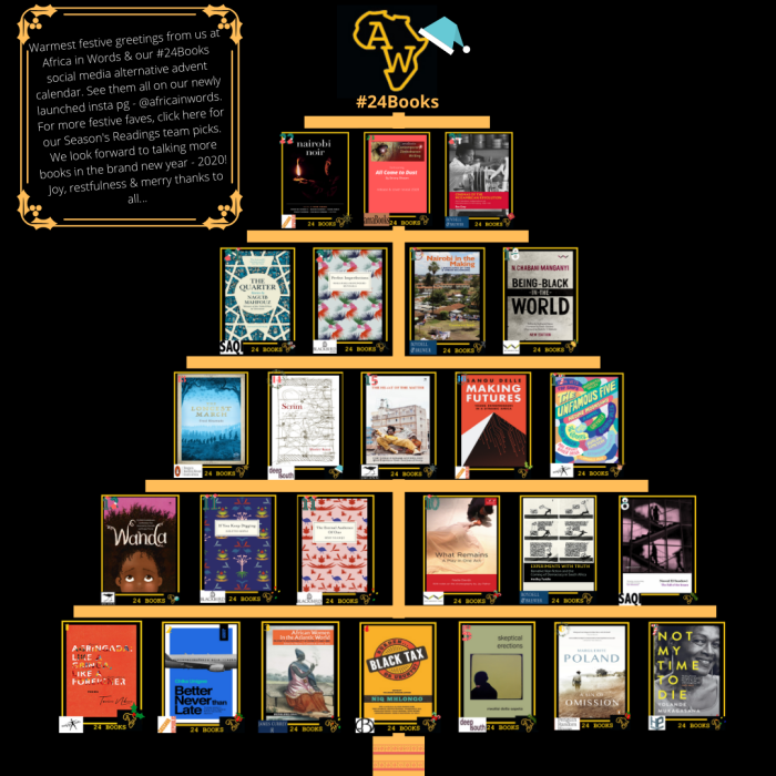 Season’s Readings from AiW’s #24Books By Africa in Words on 25 December , 2019 • ( 0 ) Share this: Click to share on X (Opens in new window) X Click to share on Facebook (Opens in new window) Facebook Click to email a link to a friend (Opens in new window) Email Click to print (Opens in new window) Print Like Loading...‹ Call for Papers: “Towards the African Renaissance” G-PAC, Mboka Festival (Deadline: 23 December)CFP: Making Sense: Language, Text and Interpretation in African Studies, University of Birmingham (Deadline: 31 January) ›Categories: Reviews & Spotlights on..., Words from the teamTags: African Articulations, African Books Collective, AmaBooks, Blackbird Books, Boydell and Brewer, Cassava Republic Press, Deep South Press, Huza Press, Jacana Media, James Currey, Jonathan Ball, Modjaji Books, Penguin Random House South Africa, Saqi Books, Umuzi, Wits University Press Related Articles Our 2020 Festive Favourites: Season’s Reading from Africa in Words Celebrating ‘The Decade Project’ with Brittle Paper: 10 AiW African Literary Cultural Faves Words from… the bedside… Words from… the bedside…