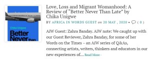 Following the success of Seasons #1 and #2 in March and April, Afrolit Sans Frontieres returned for the third time! The festival, described as ‘African Literature social distancing’, was born via South African author and curator Zukiswa Wanner’s attempts to stay creative and connected with the literary community while social distancing. Season #3 ran from May 25-June 1, with the theme “Past. Present. Future.” with curation by Mohale Mashigo and Zukiswa, and featured leading names in African writing including Leila Aboulela, Ayesha Harruna Attah, and Masande Ntshanga.