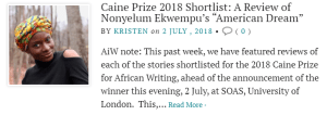 The Commonwealth Short Story Prize for Africa went to Innocent Chizaram Ilo for “When a Woman Renounces Motherhood.” You can read their winning story via Granta, and the author talks about their story here.