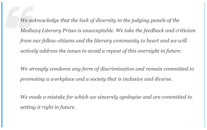 The winners of the Media24 Prize were announced. As the JRB notes here, there has been some pushback against the lack of diversity in both the prize winners and the judging panel. Reactions on social media were swift, and the JRB Daily quickly published a collection of writers’ responses. Media24 Books released a statement of apology, saying they “will actively address the issues to avoid a repeat of this oversight in the future.”