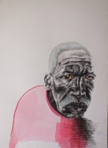 Father’s day series – c. Mxolisi Dolla Sapeta. (Ballpoint pen and ink on fabriono. dimensions-60x40cm, 2018)
