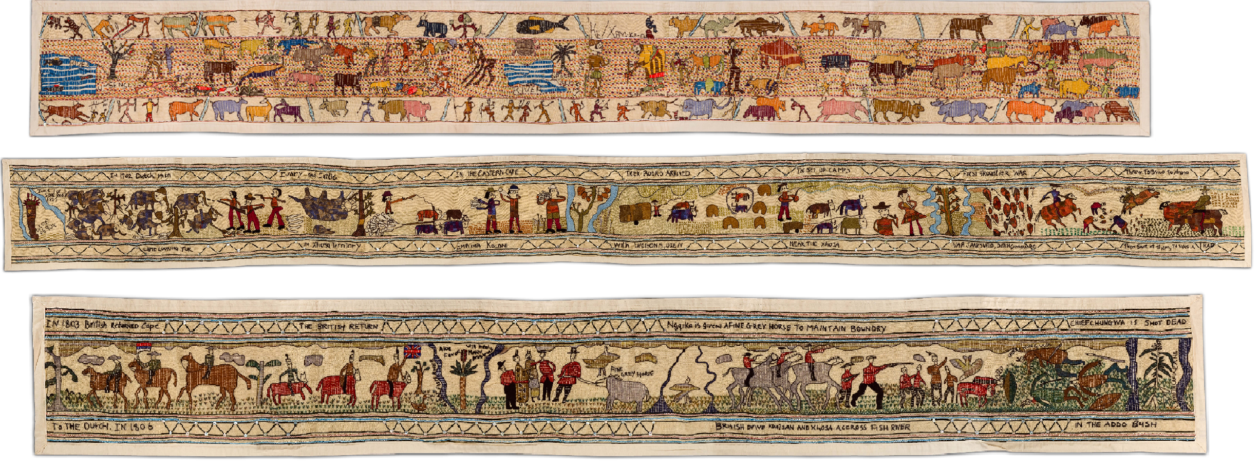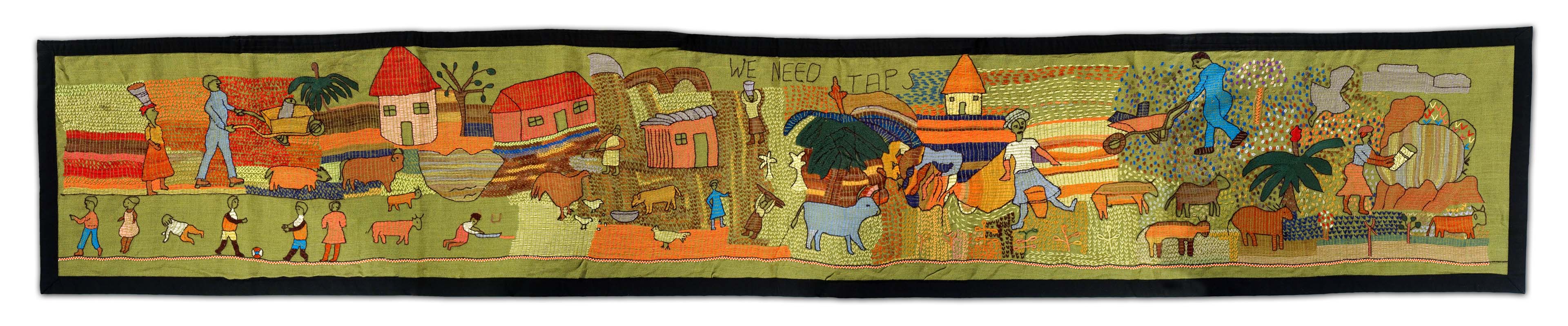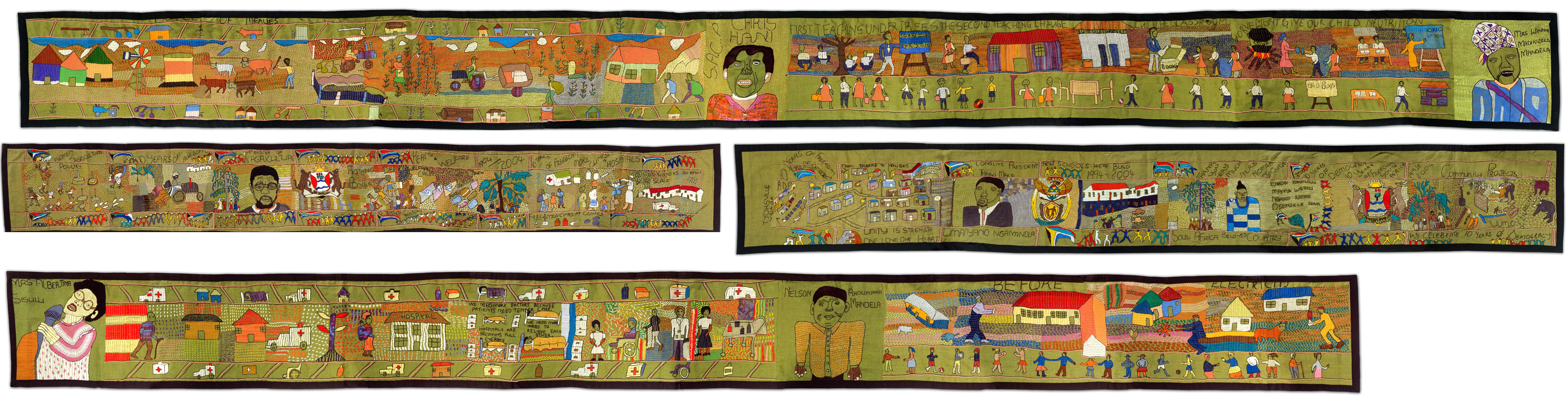Each of the Keiskamma Guernicas – compassionate, hopeful, politically resistant, made between 2010 and 2017 – tell the story of the impact of HIV/AIDS and challenge the ineffectual response of consecutive South African governments to its crisis in the Peddie region of the Eastern Cape.