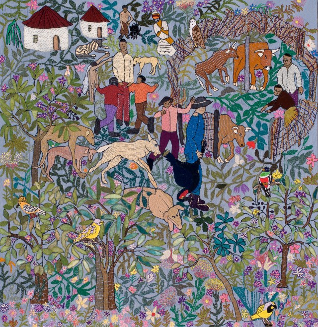 Each of the Keiskamma Guernicas – compassionate, hopeful, politically resistant, made between 2010 and 2017 – tell the story of the impact of HIV/AIDS and challenge the ineffectual response of consecutive South African governments to its crisis in the Peddie region of the Eastern Cape.