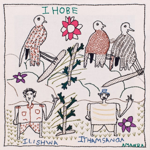 Nozeti is one of the longest established artists at the Keiskamma Art Project. She describes herself, in her own words, as “disabled, but creative”, and in recent communication was also confident to admit to being “uneducated, but forwards”, hoping for the advancement and growth of Keiskamma. Nozeti emphasizes the importance of exchange and welcomes both young people from the Keiskamma region and people from around the world to contribute to Keiskamma’s future.