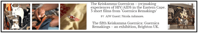 For more archive posts from AiW on the Keiskamma Art Project’s range and for an insight into the making of another of their series of tapestry works, click the image below to watch 3 short documentary films shared with us in 2017 by Guernica Remakings (Nicola Ashmore, University of Brighton), about the Keiskamma Art Project’s tapestry remakings of Picasso’s iconic painting, Guernica, and through which the makers of the five Keiskamma Guernicas voice their role in the making process. Nozeti Makhubalo mentions her involvement in the Guernica tapestry in her testimony as part of today’s post (above).