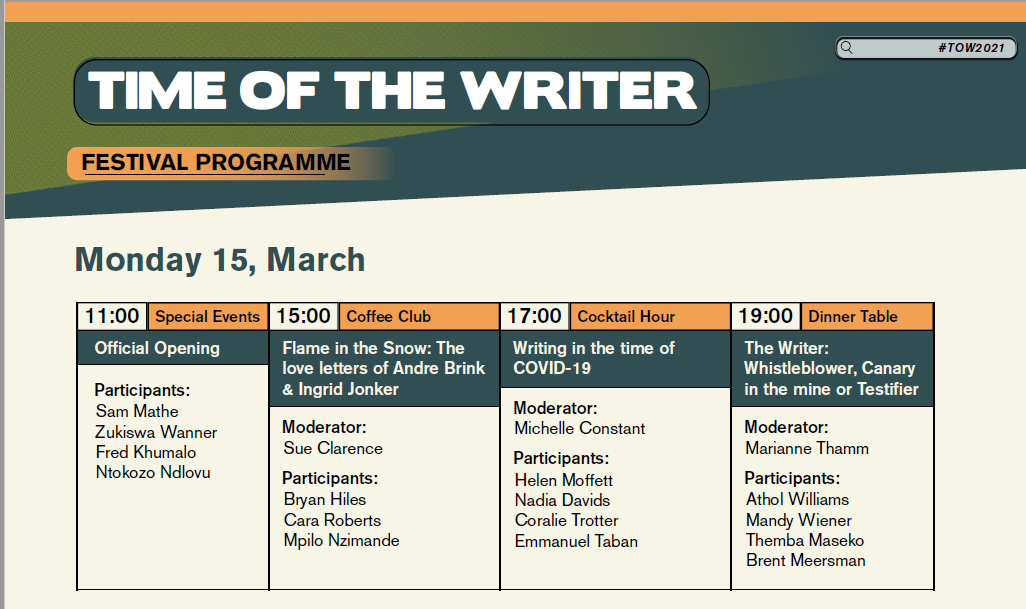 #Present – Day 1 Festival Programme – Time of the Writer 2021. https://tow.ukzn.ac.za/