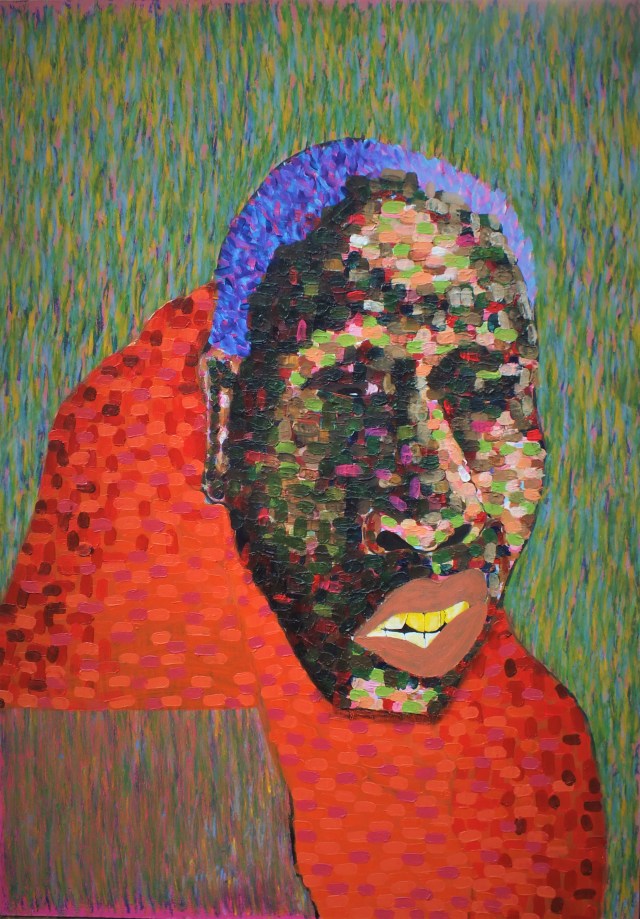 What I am trying to achieve with all this connection is to bring them together through my own observation and interpretation of life, particularly our modern times that are interpreted through the pixelation of digital screens. This I do by the thousands of colourful dots of various colours I employ to suggest and depict form, shape, and emotion in my portraits. These pixels are a sign of the communities, families and gatherings that have become significant in my developments as a human being and an artist.