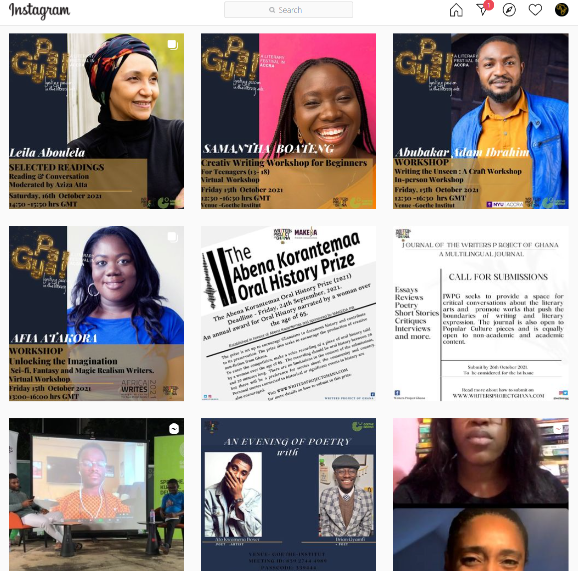 ‘WritersProjectGhana_InstaSept 2021’ Published 5 October , 2021 at 1159 × 1144 in In other Words… AiW news & wrap for September https://www.instagram.com/writerspg/ ‹ Back