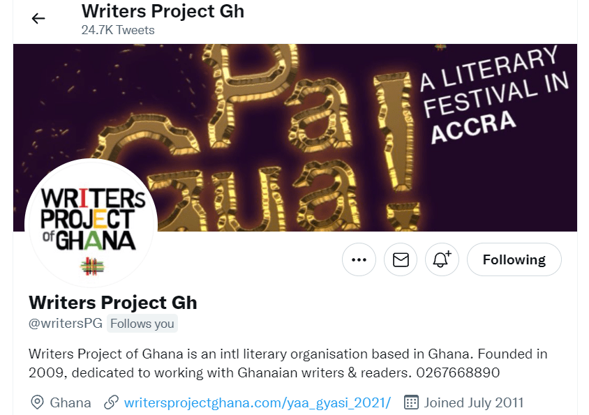 ‘WritersProjectGhana_Twitter2021’ Published 5 October , 2021 at 844 × 595 in In other Words… AiW news & wrap for September https://twitter.com/writersPG ‹ Back
