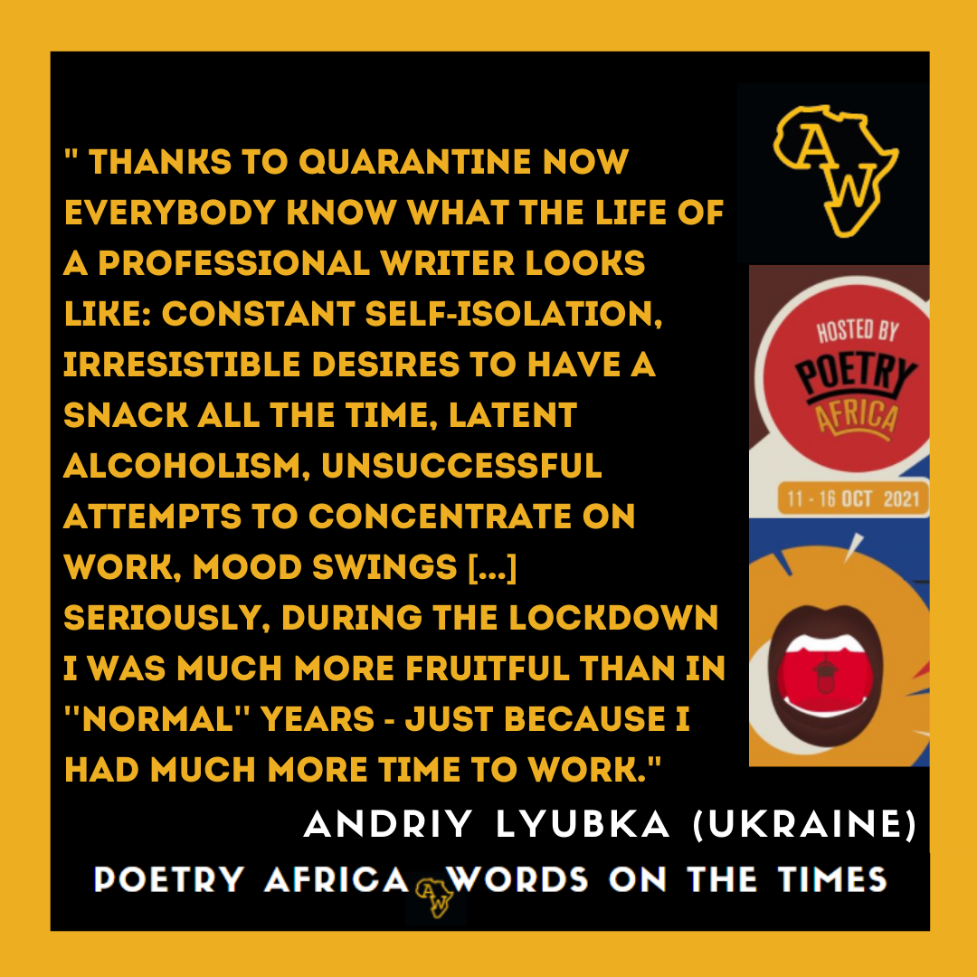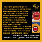 ‘AndriyLyubka-WoTQuote-PoetryAfrica’ Published 12 October , 2021 at 1080 × 1080 in Q&A – Anthony Molosi (Botswana): Poetry Africa Words on the Times ‹ Back
