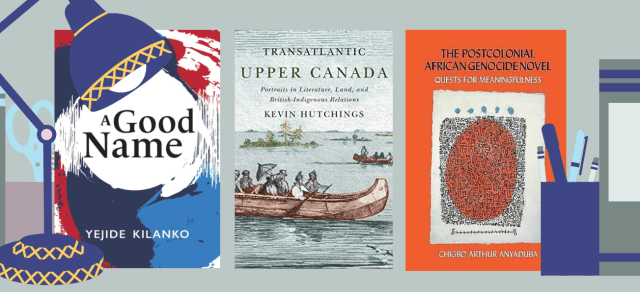 Currently, I have A Good Name by Yejide Kilanko, Transatlantic Upper Canada: Portraits in Literature, Land, and British-Indigenous Relations by Kevin Hutchings, and The Postcolonial African Genocide Novel by Chigbo Arthur Anyaduba on my desk, some highlighters, posts-it, a sketchbook, which I recently bought because a poet Gian Marco Visconti challenged me to do some doodlings, and a gift card from Glass Bookshop, Edmonton in recognition of the recent purchases I made there between September and October.
