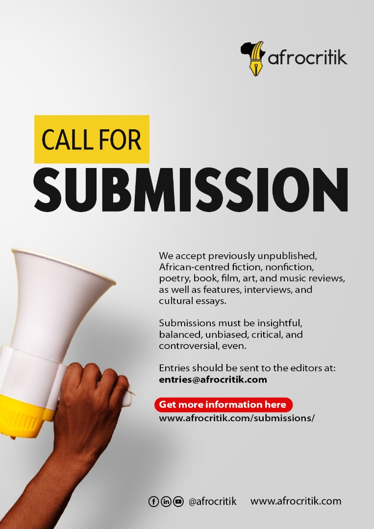 Afrocritik, a new magazine that aims to project Africa one word, one story at a time, is accepting submissions of African-centred fiction, nonfiction, poetry, book, film, art and music reviews, as well as features, interviews, and cultural essays.