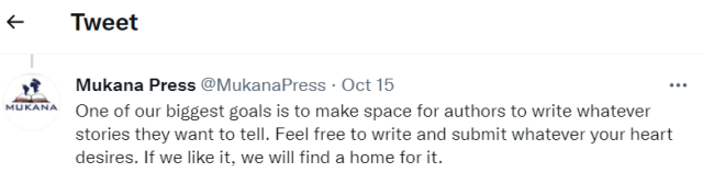 Mukana Press are a new indy “seeking authors from traditionally underrepresented groups”: