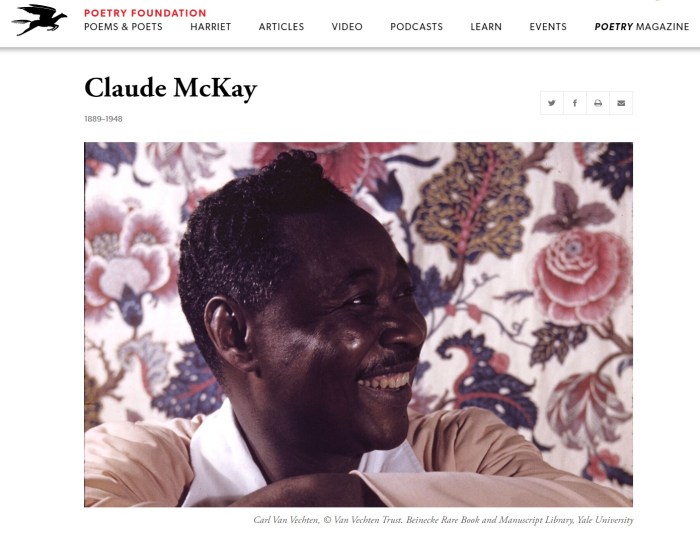 Poetry Foundation has a number of poems by Claude McKay available to read on their website and their short article on McKay’s writing life begins with this…