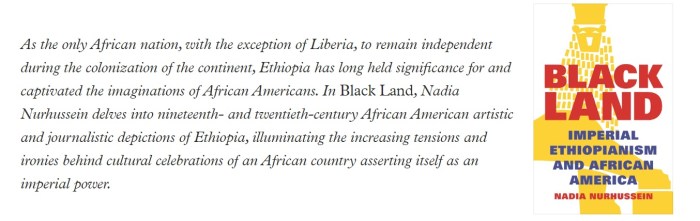 For more on, and to buy copies of Black Land: Imperial Ethiopianism and African America (Princeton University Press, 2019), with some words from Professor Nurhussein about the book’s genesis and personal its personal connections, see the publisher’s website, Princeton University Press.