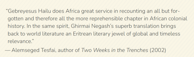 The Conscript: A Novel of Libya’s Anticolonial War, written by Gebreyesus Hailu and translated by Ghirmai Negash, with an introduction by Laura Chrisman, is widely available with links to buy at Ohio University Press; the book’s page on the Press’ website is worth a visit – it also includes feature free additional content, courtesy of Professor Negash, such as his translator’s notes and the translated first chapter (PDF), and a download of the text in the original Tigrinya (1950) – also in PDF form.