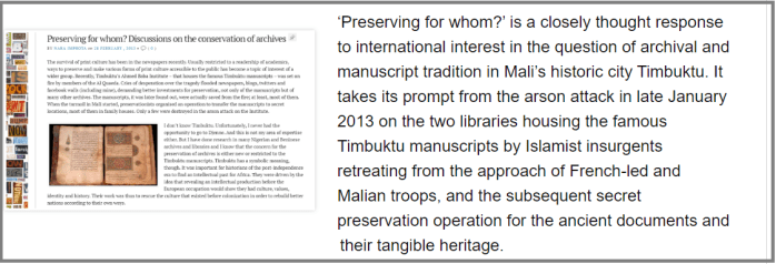 Reading this across our archives in light of Segu, too, the example central to the AiW archive couplet 1, raised as a fictional text bringing a series of crossroads for historical Mali onto its pages, being picked up by the writers in the two Q&As as: a) the epic they would have wanted to write; and b) being among the best novel they had ever read… Literature and its possibilities for alternative — for the record and as a document of alternative histories, and the capacity for imaginings otherwise, simultaneously, comes to the fore.