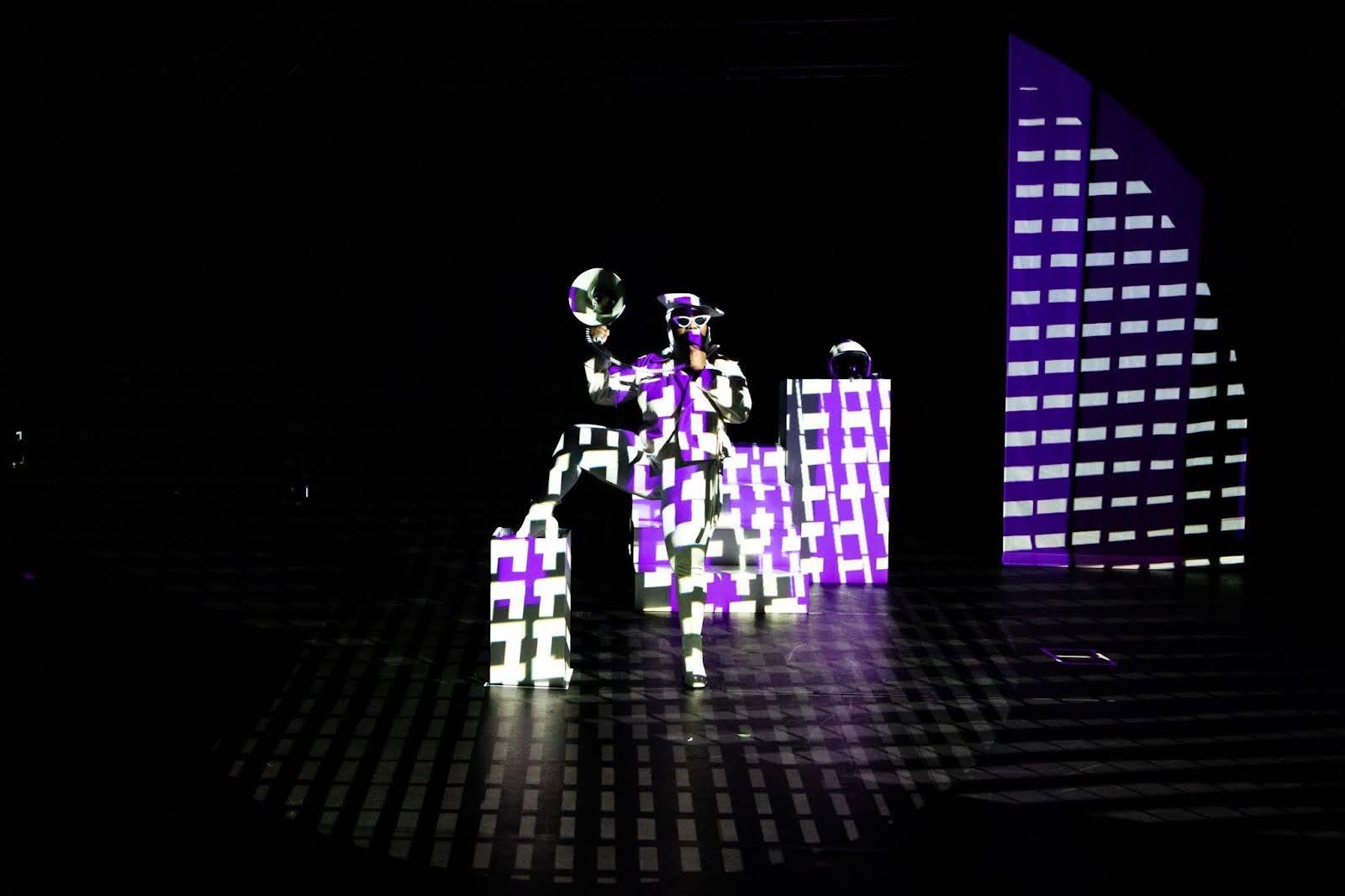 I was drawn to your choices of costume in your stage performances of HBB, particularly your bright white sunglasses and boiler suit. It felt like you were asking me to really look at you, to see what is visible, the bright clothing, yet what is invisible, the parts of you covered by said clothing.