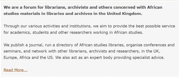 SCOLMA is the UK Libraries and Archives Group on Africa.