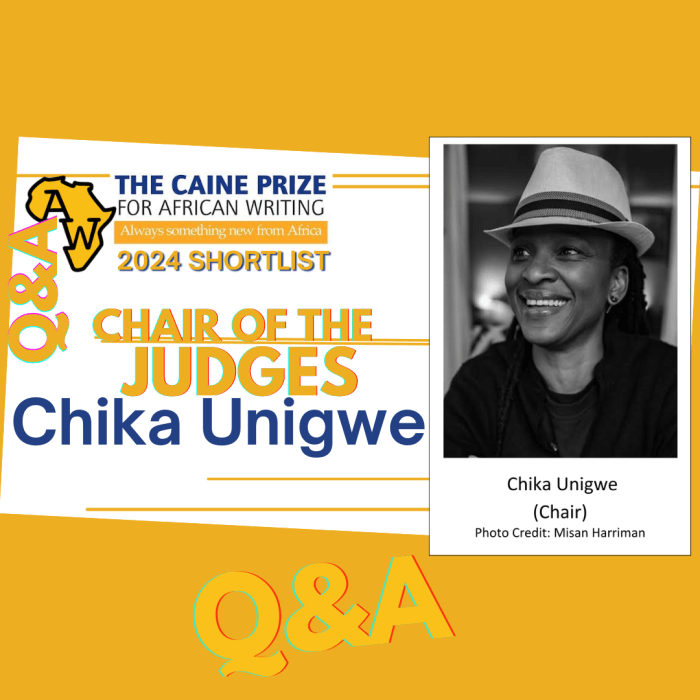 AiW: Thanks so much for speaking with us, Chika. As the 2024 Caine Prize Interim Director, Vimbai Shire has said, there is a thrilling and “diverse array of specialisms represented by the judges” on the panel this year. We are excited to share yours as Chair of the Judges, as well as your take on the 2024 Prize and your experience of the stories that have been part of it.